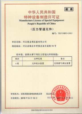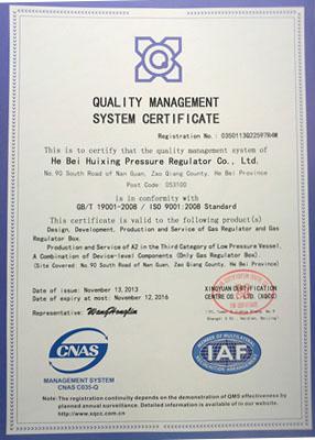 主導產品切斷式煤氣調壓器通過河北省經(jīng)濟委員會、省標準計量局認可,獲得采用國際準認可證書